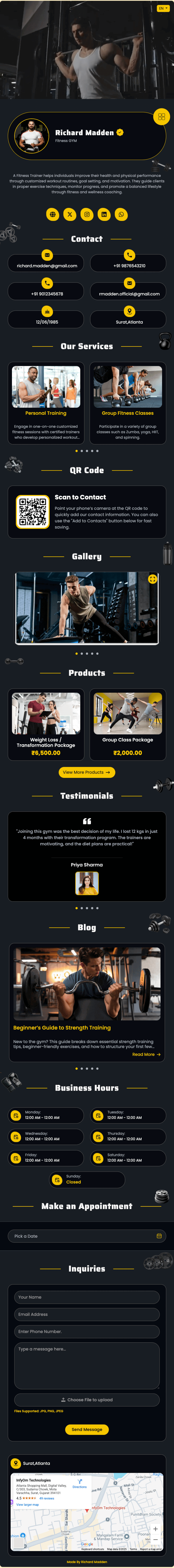 vCard de instrutor de ginástica